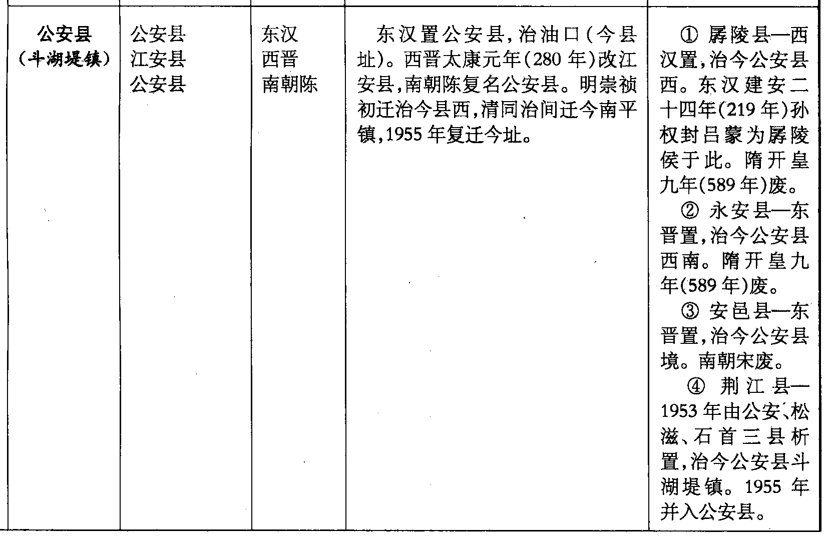 ❹ 荆江县—1953年由公安、松滋、石首三县析置,治今公安县斗湖堤镇。1955年并入公安县。