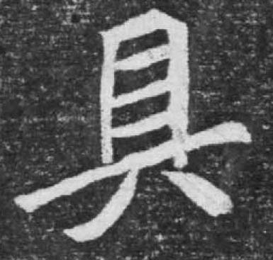 【提示】上面是 , 里面三横,不要错写成两横的且;中间三横宋体与左右两边相接,楷体与左边相接,与右边相离。 *具jù8画 八部 (1) 生产和生活中使用的器物: 工~|道~|量~。 (2) 〈书〉才干;才能: 才~|治世之~。 (3) 量词。用于棺材、尸体和某些器物: 一~棺材|一~无名尸。 (4) 拥有;具有: ~备|别~一格|独~魅力。 (5) 〈书〉备办;准备: ~呈|~结。 (6) 〈书〉陈述;写出: ~名|条~风俗之弊。 具 ☚ 弈 部">  部 ☛ 具jù甲骨文象双手(、廾)持鼎状。西周金文简化从贝、从双手。都是置备、具备义。如:具备|具有。春秋后讹从目、从双手,小篆同,隶楷又略讹。转为名词,指器具,器物。如:工具|家具|文具|农具。由具备义引申组词如:具体。 具★常◎常