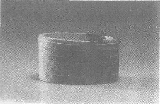 铜石并用时代良渚文化。高4.1厘米,上口径7.4厘米,下口径7.2厘米。1982年江苏省武进县寺墩墓葬出土。江苏省南京博物院藏。良渚文化是长江中下游地区的铜石并用时代文化。因浙江省杭州市余杭县良渚遗址而得名。主要分布在太湖地区。它由崧泽文化发展而来,年代约为公元前3300—2200年。琮璧一类玉器数量之多和工艺之精为同时代其他文化所未见。此圆筒形器以透闪石制成,白色有黑斑,形似手镯,介于方圆之间,两端为圆口,孔对钻而成。每面中央有四条竖槽将器表分为四部分,每面又以一窄横槽分为上下两节,均以器边棱为中线饰一组兽面纹。两组纹饰略有不同,上组兽面以阴刻圆圈为眼,以突起的方块为口。下组兽面以椭圆形凸面为眼,其间以一扇形凸面相连,有人称为眼眶,或又称为鼻子。全器共两种兽面纹,每种四组。各兽面四周以细密的阴线饰几何图案。这件制作精良的玉圆筒形器反映了原始社会琢玉技术的水平。