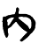 【提示】中间是人不是入; 人位于半包围结构内,末笔捺改点。 *内nèi4画 丨部 (1) 里头;里头的(与“外”相对): ~部|~地|~讧|关~。 (2) 妻子或妻子的亲属: ~人|~弟|惧~。 (3) 内脏;内心: ~疚|五~俱焚。 (4) 〈书〉指皇宫: 大~。 内 ☚ 入 糴 ☛ 内nèi甲骨文、金文和古书本作入字。入字古象入进形,象现代的指路箭头。后加冂(mì或mián,象房屋形。或jiǒng、象门等形),使意义更显。甲、金文和古书常用入字作内字。声母演变如若诺、饶挠、儒懦例。韵变去入相转略如竹笃(dǔ)、又荅与对通、叔与掉通例。内的里面义如:内衣|内情|国内。组词如:内行(háng)|内务。旧称妻子的家属。如:内兄|内侄。古代又用为纳字。约小篆时加纟(糸mì,丝)旁,产生纳字。 内★常◎常