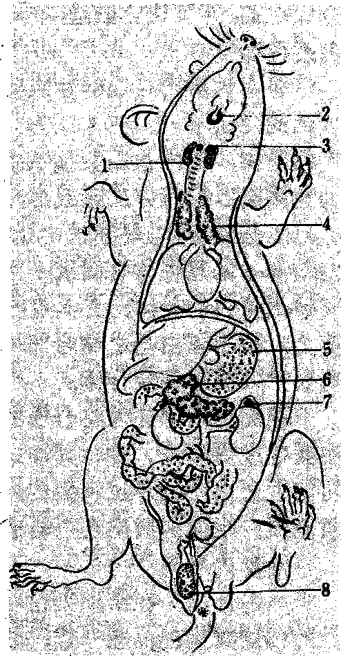 无脊椎动物的内分泌系统 多细胞无脊椎动物中最早出现具有内分泌功能的细胞是神经分泌细胞。它是一种腺体样的神经元,分泌神经激素,这种细胞广泛分布于无脊椎动物中。腔肠动物的神经分泌细胞漫散分布于体内,分泌的神经激素调节生长和生殖过程。环节动物中的多毛纲和寡毛纲,其神经分泌细胞聚集构成神经内分泌复合体,控制性腺的成熟、与生殖有关的体形变态和后节的再生等。软体动物的脑中虽有神经分泌细胞,但功能不明。此外,该动物已出现真正的内分泌腺体即成熟的性腺,它能诱导副性腺的发育。 甲壳类的神经内分泌机理很复杂,且与中枢神经系有密切关系,其内分泌器官可分为三类: ❶神经分泌细胞的聚集体。它产生神经激素并沿轴突输送出去,如x器(图2)。位于眼柄的视神经节内,分泌眼柄激素。 ❷神经血器。由神经分泌细胞的轴突末端与丰富的毛细血管紧密相连而构成。主要是神经激素贮存-释放的中心,如窦腺(在眼柄内)、后接索器官和围心器官等。 ❸真正的内分泌腺体(无神经的)。如y器、雄性腺和卵巢。y器位于大颚的基部,由一圈漫散的外胚层细胞组成,无神经直接支配,但受x器释放眼柄激素所调控,即x器激素有抑制或延迟y器分泌的作用,它类似于昆虫的前胸腺,分泌的激素能引起蜕皮。雄性腺通常位于睾丸的外边,沿输精管分布,其激素能促进精子发生和雄性特征的发育,可能受x器-窦腺复合体分泌的神经激素所调控;卵巢分泌的激素能激发雌性特征的发育。 昆虫的内分泌器官主要有脑、心侧体、咽侧体和前胸腺等(图2)。❶脑。有数群神经内分泌细胞,分泌的脑促激素能促进咽侧体、前胸腺等器官的分泌活动,脑促激素形成分泌颗粒后,沿轴突输送到心侧体贮存和释放。 ❷心侧体。在脑后方有一对心侧体,分泌的激素与脑促激素一起释放入血淋巴,调节机体的蜕皮周期,性腺生长及其他各系统的正常活动。 ❸咽侧体。位于心侧体后方,在幼虫阶段分泌保幼激素,在脑促激素的控制下释放入血淋巴,维持动物的幼虫状态,一旦保幼激素停止分泌,动物即开始向成虫发育; 在成虫期,咽侧体重新开始分泌激素,对卵的成熟和胚胎发育起重要作用。 ❹前胸腺。分泌蜕皮素释放入血淋巴,引起蜕皮; 当幼虫最后一次蜕皮变态为成虫后,前胸腺退化。在脑促激素、保幼激素和蜕皮激素的共同 作用下,调节昆虫的蜕皮、变态、发育和生殖等过程。昆虫还有特殊的有管腺,能分泌外激素或称信息激素,起着同种个体间传递信息的作用。目前发现的主要有各种昆虫的性外激素,蛾类的聚集外激素、蚂蚁和白蚁的追踪外激素和社会性昆虫的报警外激素等。