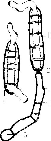 内脐蠕孢属 1. 分生孢子 2. 脐点凹陷 3. 产孢痕 4.孢子梗 5. 分生孢子梗基胞 6.分生孢子萌发 |