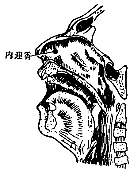 内迎香经外奇穴名。出《扁鹊神应针灸玉龙经》。位于鼻孔内上端,鼻黏膜上。主治晕厥,目赤肿痛,中暑等。点刺出血。 内迎香nèiyínɡxiānɡ经外奇穴名。代号EX-HN9。见《扁鹊神应针灸玉龙经》。位于鼻孔内, 当鼻翼软骨与鼻甲交界的黏膜上。主治目赤肿痛, 中暑, 昏厥等。点刺出血。 内迎香 内迎香奇穴。首见《玉龙经》。《肘后备急方》所载的“取葱黄 心刺其鼻”,即指本穴。位于鼻腔内上部粘膜上,与鼻唇沟尽端的上迎香穴相平处。正坐仰靠取之。穴位在鼻粘膜上; 有鼻后外侧动、静脉;并有筛前神经的鼻外支。一般用圆利针或三棱针轻轻点刺出血。针后局部疼痛。有出血素质者不宜应用。 主治头目、热病、神志等疾患,如目热暴痛,中恶卒死,口噤不开,中暑,头痛等。现又多用以治疗急性结膜炎等。