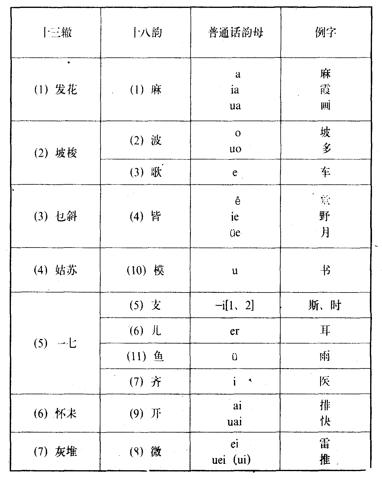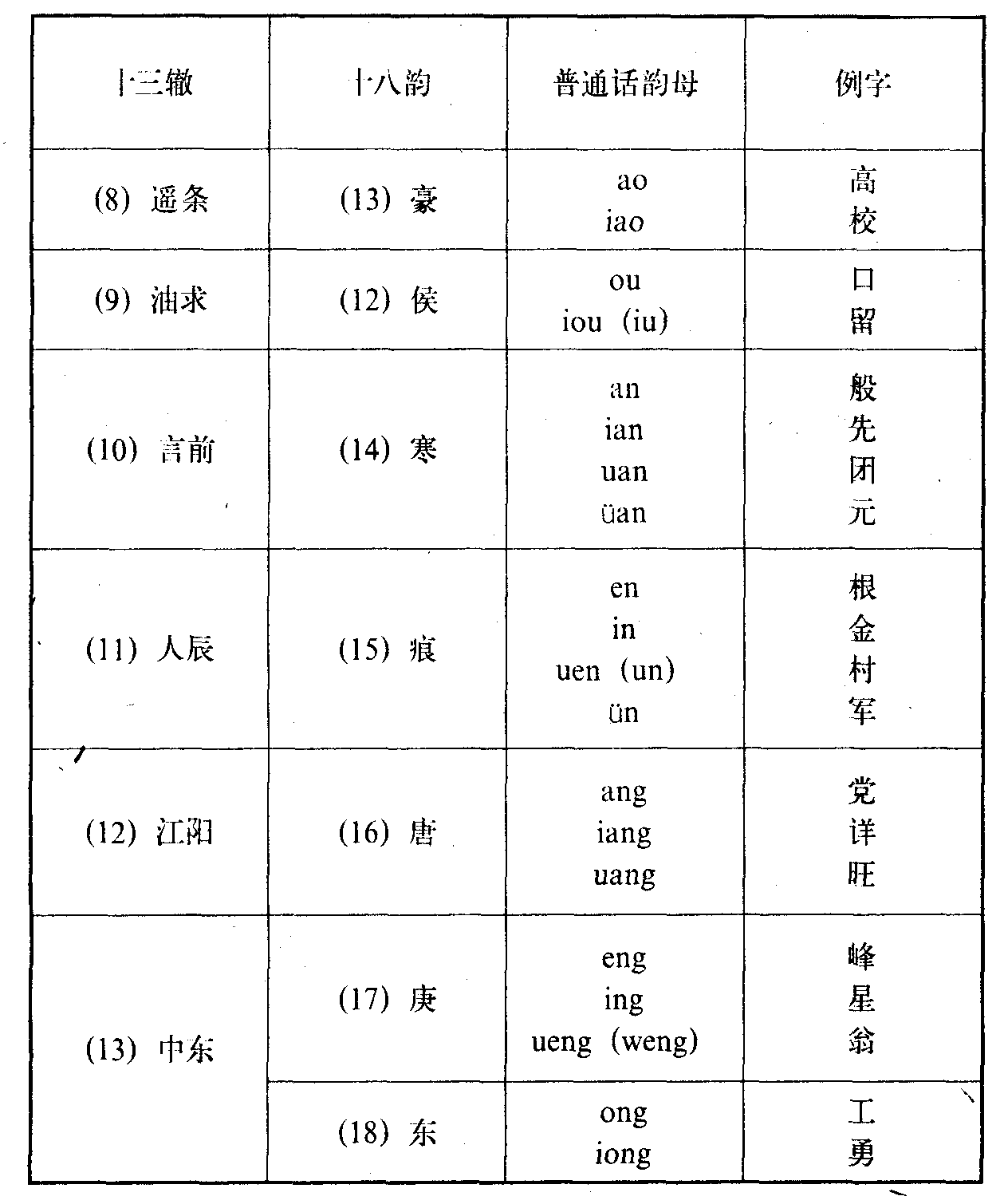 2.十三辙和十八韵对照表