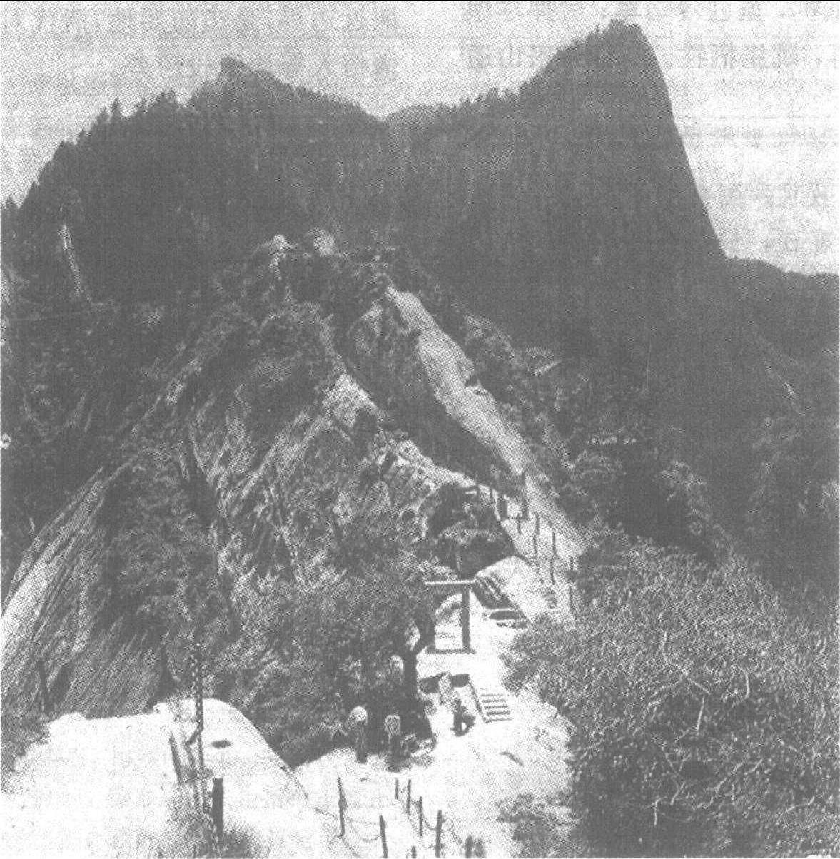 华山,古称西岳,又称太华山,在陕西省华阴县境内,是五岳之一,而在五岳之中,它的海拔最高。主峰为落雁 (南峰)、朝阳(东峰)、莲花 (西峰)三峰,还有玉女 (中峰)、五云、云台 (北峰) 等峰,高虽不及三主峰,但各具特姿,诸峰环拱莲花峰,“远而望之若花状”(《水经注》),故名华山(华,同花)。华山以 “奇拔峻秀”冠天下,尤其是莲花峰,笔立千仞,悬绝异常,名胜很多,自山麓至绝顶,庙宇古迹,天然奇景,处处可见。山上各处楼台、岩洞,多依山势建筑,如凌云架设的长空栈、悬岩镌刻的全真岩、三面临空上凸下凹的鹞子翻身,以及在悬崖峭壁上开凿出的千尺㠉、百尺峡、擦耳崖、苍龙岭等都是惊绝的险道和险景。“华山自古一条路”,登山之道南北约10公里,许多路段若无铁索牵挽,则难以攀登;有的地段两旁为深谷,令人心惊目眩,不敢俯视;有的则必须面壁挽索,贴身探足而进。相传当年唐代文学家韩愈攀上苍龙岭,回头望去,恐惧失色,自觉生还绝望,写下遗书,投掷岩下,同去的人,设法将其灌醉,才抬下山来,如今仍留有“韩愈投书处”可见华山之险奇。