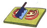 The knife split the meat in half.刀子把肉切成两半。
