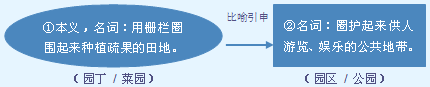 字源解说 袁,既是声旁也是形旁,表示衣服的圆形立领。園,金文 = (袁,圆形立领)+ (囗,栅圈),造字本义:比喻用篱栅圈围起来种植草木疏果的田地。篆文 承续金文字形。俗体楷书 根据草书字形 将“袁”简化成“元”。 附 文言版《説文解字》:園,所以樹果也。从囗,袁聲。 附 白话版《说文解字》:园,种植果木的地方。字形采用“囗”作边旁,采用“袁”作声旁。 引申线索