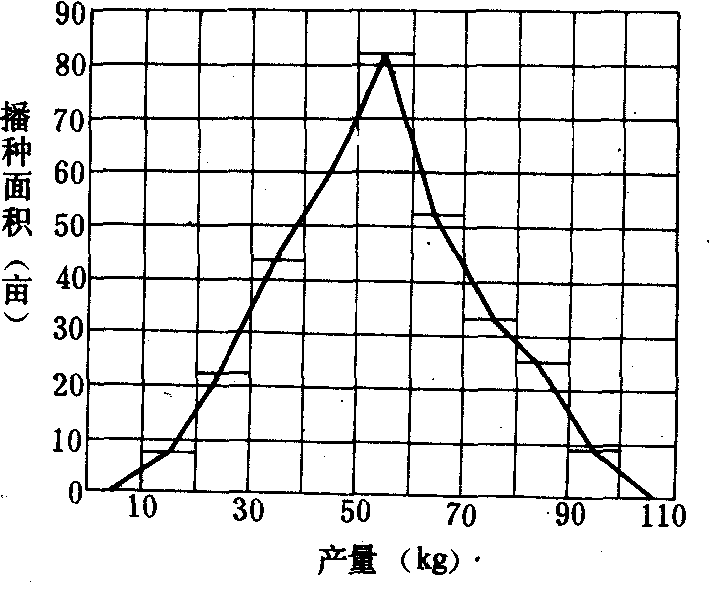 分布曲线图是表明总体单位分布情况的图形。绘图前一般先绘制直方图, 然后把直方图各个长方形顶端的中点依次用直线连接即成(如图2)。绘制分布曲线