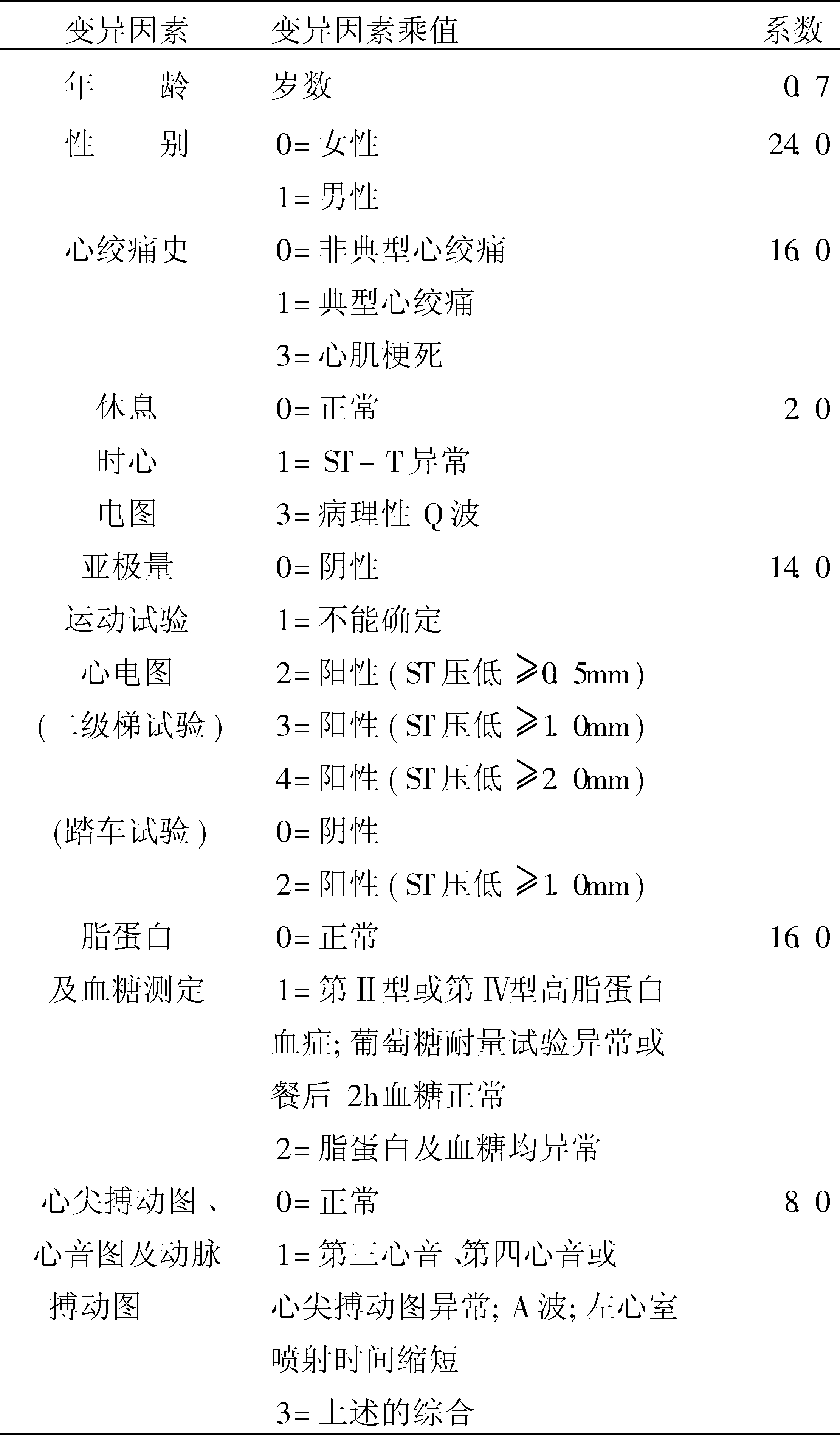 | 释义 | 冠心病临床指数诊断法 冠心病临床指数诊断法clinical index diagnosis of coronary heart diseaseN Engl J Med于1972年提出诊断冠心病的方法(见下表): 确定临床指数的变异因素及系数 ☚ 无症状心肌缺血的分型 心肌顿抑 ☛ |