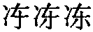 【提示】东,第四笔宋体是撇,楷体是撇点。 *冻(凍)dòng7画 冫部 (1) 液体或含水分的物体遇冷而凝结。也指这种自然现象:霜~|化~|解~|~豆腐|萝卜~了。 (2) (~儿)汤汁凝成的胶状体:鱼~儿|肉皮~儿。 (3) 受冷或感觉冷:~得慌|手~僵了|~得脸生疼|小心别~着。 冻凍dòng古代形声字。从冫(古冰字),东(東)声。厚冰义。转为动词,指液体或含水分的东西遇冷凝结。如:河里冻冰了|天寒地冻。引申为感到寒冷或受到寒冷。如:天冷,冻得慌|小心别冻着。又引申指凝结了的汤汁。如:肉冻儿|果冻儿。 冻凍★繁◎常★常