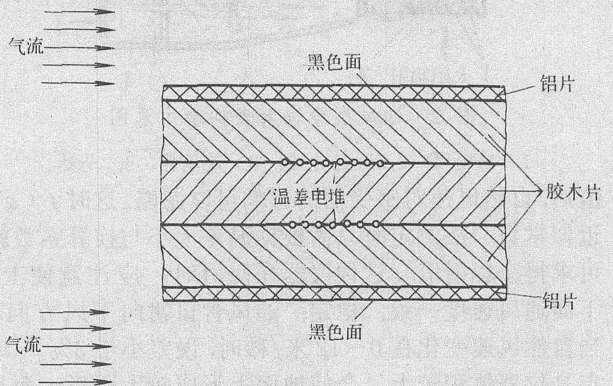 图1 净辐射表感受面原理图 原理与结构 常利用一块上、下两面涂黑的板,水平放置,根据上、下两个黑色表面的温度差测定地面的净辐射。各种类型净辐射表的基本构造是:感受元件都是由两块表面涂黑,特性完全一致的平板构成(如图1)。要求上、下两个感受面的黑体能够吸收所有波长的辐射。当平板水平置于自然条件下时,其两面的温差与它们所接收到的净辐射通量成正比。温差的大小由串联在上、下感受面背面的温差电堆测定。这种原理的净辐射表所测得的净辐射与温差之间的关系,可以用下式非常近似地表示出来: Фe=(T1—T2) 〔K+f(v)〕, 式中 Фe为净辐射,T1、T2为感受器上、下面的温度,K为仪器常数, f(v)是与感受器上、下面风速有关的函数值。由式可知,只要解决风速影响的问题,即可由温差来决定净辐射通量。 类型 通常有三种办法来解决风速影响的问题,因而有以下三种类型的净辐射表: 风速订正型净辐射表即热电式雅尼舍夫斯基相对净辐射表。感受器是由中间用绝热材料隔开的两块相同的铜盘构成,铜盘上面涂有能够吸收所有波长的黑色涂料。温差电堆的冷、热接点穿过中间的绝缘层串接于上、下感受面的背面。测定时,仪器完全裸露,安装于距下垫面一定高度上。上、下两个感受面受到不同辐射通量的作用,产生温差,并由温差电堆表示出来。为了抵消风速对温度的影响,现在控制净辐射不变情况下,改变感受面上、下的气流速度,作出一系列在不同风速条件下的“温差—风速”订正曲线。使用时,同时测定温差和仪器感受器周围的风速,根据风速在上述曲线上查出订正的温差电流值与换算系数求得净辐射通量。这种类型仪器的缺点是: 由于自然大气中的风速不易精确测定,同时自然风速的变化情况与实验模拟的情况有很大差异,故可引起很大误差。仪器的感受器直接暴露于自然环境中,感受面极易污染。此外,当有凝结、降水出现时不能使用。 人工通风型净辐射表 它的感受器也是两面涂黑的平板, 由温差电堆来测定板上、下两面的辐射通量值。为了抵消在测定时自然风速对温差的影响,仪器上附有人工的通风器(如图2)。通风器的气流均衡地吹过上、下两个感受面。当控制通风速度达到一定值后,自然风速对感受器的影响可以忽略。这时f(v)近似常数。故测定时只需根据温差大小与换算系数就可求得净辐射值。这种仪器在使用时, 应注意使上、下面通风速度一致、稳定; 通风管口朝向下风方向。当自然风速变化在0~12米/秒时,误差小于3%。缺点是仪器体积较大, 会使地面上形成较大阴影, 而且需要电源。此外, 感受面易受污染, 有凝结及降水时也不能使用。 ![]() 图 2 通风型净辐射表构造示意图 1. 感受面; 2. 温差电堆; 3. 通风器; 4. 马达 防风膜型净辐射表 感受器的构造与通风型相同。在测定时, 为了使感受器不受自然风速对温差的影响,用特定的聚乙烯塑料薄膜制成半球形的防风罩,加盖在上、下感受面上,这样f (υ)可以近似常数。薄膜的厚度为0.1毫米时,在波长为0.3~40微米之间的辐射都能透过, 其透过率大于90%。只有在3.5微米、7微米、14微米三个波长附近有很窄的吸收带,对测量精度影响不大。聚乙烯薄膜防风罩固定在仪器上、下感受面后, 使用时将罩内充干燥空气即成半球形。当防风罩上有凝结物出现时, 可利用附加在感受器外围的电加热环提高感受器周围的气温, 以防止或消除凝结现象。也可对半球罩外面送风, 加强扰动, 以防止凝结发生。 防风膜型净辐射表构造简单, 适于农业气象工作中使用。仪器感受面的尺寸标准为直径6厘米,微型的为1厘米。这种类型的净辐射表, 当在其底下感应面用里面涂黑的金属罩代替聚乙烯薄膜时, 就可当作总辐射表使用。 |