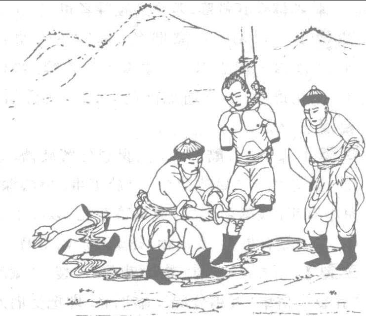 | 释义 | 凌迟líng chí衰败,衰颓。韦应物《登乐游庙作》:颓壖久凌迟,陈迹翳丘荒。孟郊《答友人》:道语必疏淡,儒风易凌迟。 凌迟 也叫陵迟。俗称千刀万剐。执行死刑时零刀碎割使被杀者缓慢地死去,因此而加重了受刑的痛苦。行刑之法,历代不尽相同。相传有八刀之说,先割头面,然后是手足、胸腹,最后枭首。《宋史·刑法志》有详细记载。凌迟是五刑之外的法外刑,始于五代,宋朝初年并未沿用。真宗时,杨守珍出使陕西,请求将“擒获强盗至死者”处以凌迟之刑,遭真宗驳斥。宋仁宗时,开了宋朝凌迟罪的先例。凌迟作为常用之刑,是神宗以后的事。辽代正式将凌迟编入法律之中,金律、元律都把凌迟定为死刑之一种,元、明两代沿用。明初曾广泛采用凌迟刑,有关的律和例,共计13条,清律全部承袭使用,还陆续增加了劫囚、发冢(墓)、谋杀人、杀一家3人、威逼人致死、殴伤师傅,殴打祖父母和父母、狱囚脱监以及谋杀本夫等9条13罪。凌迟罪犯如果在行刑前自然死亡,仍须戮尸。 凌迟líng chí衰败,衰颓。齐已《戊辰岁江南感怀》:“曾吟子山赋,何啻旧凌迟。” 凌迟língdí虐待;折磨。也写为凌持:即个后母将前人囝~甲要死zīt’é âobbǔ ziōng zíngláng gniǎ língdí gāh bbēhsǐ(这个后娘把前妻生的孩子虐侍、折磨得快死了)。《敦煌变文集·目连缘起变文》:“牛頭每日凌遲,獄卒終朝來拷。”《敦煌变文集·妙法莲华经讲经文》:“終日凌持,多般捶拷。” 〗、仙游〖 〗。 〗、莆田〖 〗、仙游〖 〗。 〗。![]() ![]() 凌迟古代最残酷的一种死刑。即用刀子逐块割尽人肉致死。(亦说先断四肢,后再割断喉管致死)。《宋文鉴》 四载钱易语曰:“身俱白骨而口眼之具犹动,四体分落而呻吟之声未息。”唐以前,凌迟是作为法外之刑出现的。《隋书·刑法志》载北齐宣帝常以凌迟轻刀脔割杀人,此乃凌迟法最早记载,唐安史之乱后,凌迟之法多见。如颜呆卿被安禄山缚于中桥之柱而剐之。崔安潜曾剐盗于市。《辽史·刑法志》:“死刑有绞、斩、凌迟之属”,凌迟作为正式刑最早载入法律。《续资治通鉴长编》载宋真宗下令将侍婢韩氏凌迟处死。南宋官方修订的正式法书《庆元条法事类》列入凌迟之刑,后历代相沿不绝。多处十恶中不道以上诸重罪。光绪三十一年 (1905) 废凌迟之刑。亦称剐、脔割。 凌迟;陵迟◉ 凌迟línɡchí 动 也作“陵迟”。古代的一种残酷的死刑,先用刀分割身体,然后割断咽喉。〈例〉~示众/ ~处死/ 张驴儿毒杀亲爷,奸占寡妇,合拟~。 古代名物 > 刑罰類 > 刑名部 > 墨劓 > 肢解 > 凌遲 凌遲 língchí 亦作“陵遲”,亦稱“剮”。最殘酷之刑罰。斬斷、剮割犯人肢體及骨肉,至其死亡。五代始設此刑於法外;宋以處罰犯“大逆”、“逆倫”罪者;元正式將其列入刑法;清末始廢。《遼史·刑法志上》:“死刑有絞、斬、陵遲之屬。”《宋史·刑法志二》:“若凌遲、腰斬之法,熙寧以前未嘗用於元凶巨蠹,而自是以口語狂悖致罪者,麗于極法矣。”《明史·刑法志一》:“二死之外有陵遲,以處大逆不道諸罪者。”參閱清·錢大昕《十駕齋養新録·凌遲》。