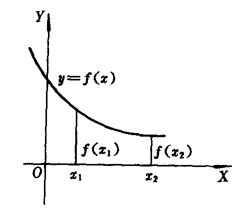 对于给定区间上的函数f(x),如果对于属于这个区间的任意两个自变量x1,x2,当x12时,都有f(x1)>f(x2),那么就说f(x)在这个区间上是减函数(如图).例如,指数函数y=az(0ax (0