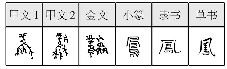 fènɡ初为象形,甲骨文1初象高冠、花翎、长尾的凤鸟形,甲骨文2、金文加音符凡,变为形声;小篆改为从鳥,凡声,隶定为“鳳”。古代传说中的神鸟。清代俗字、《手头字》、《简体字表》、《简化字表》简作“凤”,据草书楷化。凤凰,古代传说中的神鸟,雄的叫凤,雌的叫凰。凤 鳳; 甲 金 篆 隶fèng【析形】象形字。甲骨文字形像一只有高冠、花翎、长尾的凤鸟。金文字形增声符“凡”,尾部饰件与整体脱离。凤属于鸟类,故小篆字形省变象形整体为“鸟”旁,成了从鸟、凡声的形声字。 【释义】《说文》:“神鸟也。”本义是古代传说中的神鸟,雄的称“凤”,雌的称“凰”,也通称“凤”或“凤凰”。具有鸡头、蛇颈、燕颔、龟背、鱼尾、五彩色的特征。凤凰是古代先民的一种鸟图腾崇拜,融合了远古时期各个不同氏族所崇拜自然物的特征。 凤是人们心目中的瑞鸟,天下太平的象征。“凤”也比喻有圣德的人,也可比喻婚姻关系中的男方。凤凰也是中国皇权的象征,常和龙一起使用,与龙对举时,凤也代表阴,尽管凤凰也分雄雌,但一般将其看做阴性,从属于龙,用于指皇后嫔妃。龙凤呈祥是最具中国特色的图腾。 【shape analysis】It is the pictograph character.In Oracle,the character is shaped like a phonenix with tall crest,colorful feathers and a long tail.In Bronze Inscriptions,the character was added凡(fán)as its phoenix sign.Besides,the decorative parts on the tail were detached from the whole.凤 is a kind of bird,so in Small Seal script the character is transformed from a pictograph into a pictophonetic character with the part 鸟 as its ideogram and the part 凡 as its phonetic sign. 【original meaning】A kind of deified bird.The male of this kind of birds were called 凤 while the female ones were called 凰,or were generally called 凤凰 with chicken's head,snake's neck,swallow's chin,turtle's back and fish's tail as well as colorful body.凤凰 symbolizes the bird worship of the ancient Chinese.It is a combination of many worships of different clans in different times. |