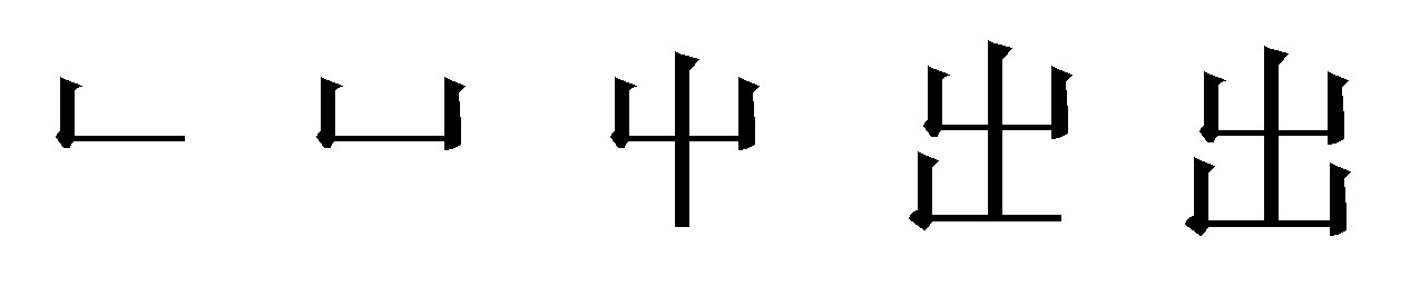 出齣 ❻❶由里到外:~门︱~国︱~口︱~境︱~洋︱~海︱~航︱~车︱~轨︱~家︱~院丨~路丨~发︱~动︱~行(xing)︱~外︱~访︱~任︱~游︱~走︱~巡︱~征︱~诊︱~猎︱~处(chu)︱~仕(shi)︱~兵︱~击︱~逃︱~亡︱~聘︱~嫁︱~阁︱~差(chai)︱~使︱~奔︱~丧(sang)︱~殡(bin)︱~勤︱~入︱~台︱~席︱~场︱~笼︱~山丨~界︱~伏︱~蛰(zhe)︱~险︱~血︱~列︱进~︱脱~︱旁~︱日~︱公~︱革~︱娩(mian)~︱输~︱~口成章︱~生入死︱~神入化︱~其不意︱师~有名︱师~无名︱初~茅庐︱言~法随︱半路~家︱入主~奴︱脱口而~︱倾巢~动︱深入浅~︱脱颖(ying)而~︱深居简~︱和盘托~丨呼之欲~︱挺身而~丨喷薄欲~︱一言既~,驷(si)马难追。 ❷超出:~众︱~色︱~格︱杰~︱~人头地︱~类拔萃(cui)丨~人意表︱喜~望外。 ❸拿出;支付:~售︱~卖︱~让︱~借︱~赁(lin)丨~纳︱~力︱~题︱支~︱付~︱~奇制胜︱独~心裁︱别~机杼(zhu)︱量(liang)入为~︱悖(bei)入悖~︱入不敷(fu)~。 ❹产生;发出:~产︱~处(chu)丨~世︱~生︱~版︱~身︱~事︱~险︱~气︱~汗︱嫡(di)~︱庶~丨~尔反尔︱~言不逊︱如~一辙(zhe)︱青~于蓝︱计~万全︱事~有因。 ❺显露;出现:~名︱~头︱~面丨~缺︱~没(mo)︱突~︱展~︱百~︱歧(qi)~︱辈~︱~头露面︱~没(mo)无常︱神~鬼没(mo)︱层~不穷︱水落石~︱人才辈~。 ❻杂剧中的一折;戏剧中的一个独立的剧目:第二~︱一~戏。 出chū❶ 超过,超出:出界│出众│出色│出乎意料。 ❷ 产生,生产:出产│出品│出问题│出人才。 ❸ 离开,脱离:出发│出家。 ❹ 来到:出席│出庭│出场。 ❺ 从里边到外边:出国│出口│出门│进出。 ❻ 向外拿:出售│出租│出钱。 ❼ 支付:出纳│入不敷出│量入为出。 ❽ 显露:出名│出面│突出│水落石出。 ❾ 用在动词后面,表示趋向或结果:走出校门│取出报纸。 ❿ 用在形容词的后面,表示超过:多出二尺布│高出一百多分。 ⓫ 戏曲中的一个段落或一个独立的剧目。 出(9次) ❶出去;出离。入不言兮~不辞《歌·少》~自汤谷《天》 ~国门而轸怀兮《章·哀》 放子~而不还《章·悲》 ❷升出。暾将~兮东方《歌·东》 白日~之悠悠《章·思》 ❸释放。据《史记·夏本纪》所载:夏桀曾召汤而囚之于夏台,后来又释放了他。汤~重泉《天》 ❹生出。爰~子文《天》 ❺显现出来。羌芳华自中~《章·思》 出chū❶从里面到外面。与“入”相对。《集韵·至韵》:“出,自内而外也。”《诗经·郑风·出其东门》:“出其东门,有女如云。”《少司命》:“入不言兮出不辞。” ❷离开。《玉篇·出部》:“出,去也;远也。”《诗经·小雅·宾之初筵》:“既醉而出,并受其福;醉而不出,是谓伐德。”郑玄笺:“出,尤去也。”《九叹·愍命》:“蔡女黜而出帷兮。” ❸ 出现,显露。《玉篇 · 出部》:“出,见也。”《庄子·天地》:“至言不出,俗言胜也。”《思美人》:“羌芳华自中出。” ❹生也。《易·说卦》:“万物出乎震。”《天问》:“爰出子文。” ❺释放,开脱。《国语·周语中》:“晋侯闻之曰:‘是君子之言也。’乃出阳民。”韦昭注:“出,放令去也。”《天问》:“汤出重泉。” ❻“士”字之误。《大招》:“接径千里,出若云只。”姜亮夫通故:“‘出’为‘士’字之误。……王逸注中有‘隐士慕己来集,若聚云也。’按‘出若云只’无主语,‘出’当是‘士’字之误,若云谓士之多也。古‘士’、‘出’二字多互误。” 出 出鞍马动作的基本术语之一。指从环上或环中以单臂为轴转体移位到马端的动作。如:身体由环上直角出至环外后撑等。 ☚ 进 平移 ☛ 出chu出版 出榜 出奔 出殡(bin) 出兵 出彩 出操 出差(chai) 出产 出厂 出场 出超 出车 出乘 出丑 出处 出错出倒(dao) 出道 出典 出店 出顶 出动 出发 出饭 出访 出扶 出伏 出格 出阁 出工 出恭 出轨 出国 出海 出航 出号出乎 出活 出击 出继 出家 出价 出嫁 出尖 出界 出借 出警 出境 出九 出局 出句 出具 出圈(juan) 出科 出空(kong)出口 出来 出栏 出力 出列 出猎 出溜 出笼 出炉 出路 出落 出马 出卖 出梅 出门 出面 出苗 出名 出没(mo) 出纳出盘 出品 出聘 出圃 出奇 出气 出巧 出勤 出去 出圈儿出缺 出让 出任 出入 出丧(sang) 出色 出山 出身 出神 出生 出师 出使 出示 出世 出仕 出事 出手 出首 出售 出数儿(shur) 出台 出摊 出逃 出题 出挑 出粜(tiao) 出庭 出头出徒 出土 出脱 出外 出亡 出息 出席 出险 出现 出线 出项 出新 出行 出性 出血 出巡 出芽 出言 出眼 出演 出洋出游 出于 出语 出狱 出院 出月 出展 出站 出账 出诊 出阵 出征 出众 出资 出自 出走 出租 百出 辈出 超出 重出发出 放出 飞出 分出 付出 革出 公出 交出 进出 看出 列出 旁出 歧出 日出 伸出 输出 说出 岁出 特出 提出 跳出凸出 突出 退出 脱出 析出 戏出儿 选出 演出 溢出 月出展出 支出 指出 逐出 做出 出版家 出版社 出版物 出版者出岔子 出点子 出发点 出份子 出风头 出国热 出家人 出境证出口税 出乱子 出满勤 出勤率 出入证 出生率 出世作 出事故出线权 出洋相 出月子 出榜安民 出尘不染 出尔反尔 出凡入胜出乖露丑 出乎意外 出将入相 出口成章 出口伤人 出类拔萃 出没(mo)无常 出谋划策 出其不意 出奇制胜 出人头地 出人意料出神入化 出手不凡 出生入死 出圣入神 出水芙蓉 出台亮相 出头露面 出土文物 出歪点子 出言不逊 出言无状 出以公心 出租柜台 出租汽车 层出不穷 独出心裁 半路出家 