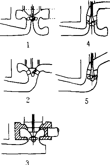 出水型式 1、2、3.蜗壳出水 4、5. 弯管出水 |