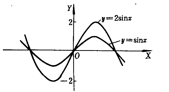 再例如,函数y=2sinx的图象是由函数y=sinx纵向伸长至a倍而得(如图2).