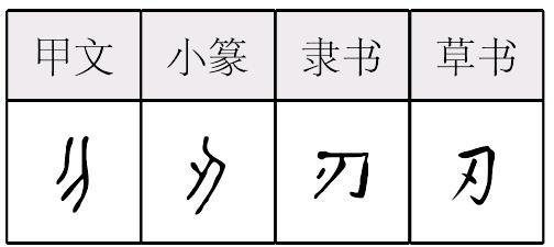 ❹ 兵不血刃|登锋履刃|赴火蹈刃 刃rèn“刀”上加一点,指示刀刃的所在,属指事字。作声符生成的字有: ren 上声:忍(忍耐) 去声:纫(缝纫) 韧(坚韧) 仞(“一片孤城万仞山。”“一仞”高就是“一人”高,约七八尺) 轫(车轫) 牣(《说文》:“牣,满也。”) 相关链接 “认”的繁体为“認”,也是以“刃”为声符,简化为“认”,以“人”为声符。刃(rèn)“ ,刀坚也。象刀有刃之形。凡刃之属皆从刃。”(而振切) 甲骨文作 ,象刀形,一点则指明刀刃所在。甲骨文“刃”作人名或方国名。上博简或加“金”字旁,作 。许慎所谓“刀坚”,意思是刀之坚刚锋利之处。王筠《说文释例》:“夫刀以刃为用,刃不能离刀而成体也。顾刀之为字,有柄有脊有刃矣。欲别作刃字,不能不从刀而以·指其处,谓刃在是而已。”故“刃”之构意是刀口。如《尚书·费誓》:“备乃弓矢,锻乃戈矛,砺乃锋刃,无敢不善。”锋刃是说犀利的刀锋。 刃部有两个属字。如:“劒,人所带兵也。”“刅,伤也。从刃,从一。创,或从刀,仓声。” 刃刄rèn(3画)
