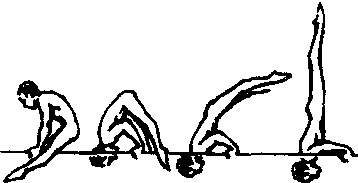 双杠项目简单动作之一。由分腿坐开始。两手在体前靠近大腿处握杠,接着将身体重心移至两手,随即屈体前倒,屈臂撑杠,顺势收腹提臀、开肘,两上臂三角肌在离握点约20厘米处撑杠。当臀部提至垂直部位时,两腿经两侧匀速地向上并拢,同时伸直髋关节,立腰稍抬头,使重心均匀地落在两肩与两手之间,成肩倒立姿势。做该动作时常见毛病是:提臀不够便开始伸展髋关节;提臀时过分低头又不及时开肘而滚翻过去。初学时,帮助者站在练习者的侧面,一手从杠下托肩,另一手在杠上扶练习者的腿或臀,助其成肩倒立姿势。