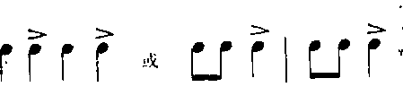 ❷强拍为休止时重音延留。如