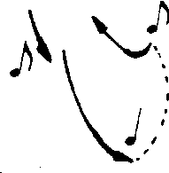 切分音是在乐曲中经常见到的一种特殊节奏型,它的特点是把小节中原来的强拍后移至中间长时值的音符上去,形成一种强弱拍互换的特殊节奏处理。如:“”节奏,即把强拍后移到中间的四分音符上去。对这样的二拍子,指挥图式也要有所不同,即把第一拍的后半拍与第二拍的前半拍合成一个强拍来击拍,而把第一拍的前半拍和第二拍的后半拍做为弱拍处理,如图。