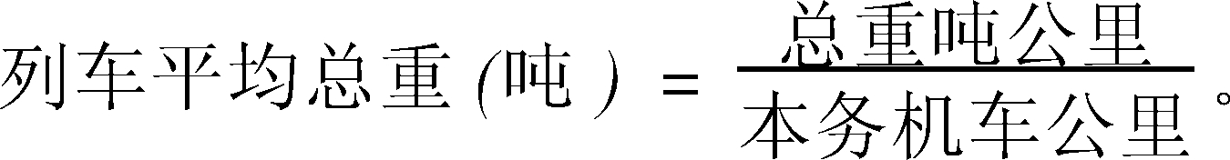 | 释义 | 列车平均总重 列车平均总重gross ton-kilometres per train kilometre每一列车的平均总重量。反映机车牵引力利用程度的指标。其计算公式为:
