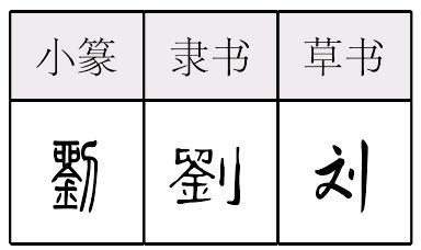 liú劉,表意,从金、刀,卯声,本义为斧钺一类的兵器,引申为杀,假借为姓。元代俗字、《手头字》、《简体字表》、《简化字表》简作“刘”,据草书楷化。 【辨析】 ❶以“刘”作音符构成的形声字一般读liú:浏。 ❷“刘(劉)”可作类推简化偏旁使用,如:浏(瀏)。 |