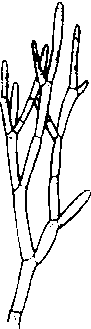 | 释义 | 刚毛藻属Cladophora绿藻门,刚毛藻科。常见的丝状绿藻。淡水产,广泛分布于湖泊、稻田、水沟等处。藻体为单列细胞组成的分枝丝状体。细胞圆柱形,细胞壁甚厚,其外层有粗糙感。细胞多核,幼时色素体粒状,成熟后呈网状,蛋白核多数。基部细胞形成假根状分枝。以藻丝断裂行营养繁殖。无性生殖产生动孢子或厚壁孢子。有性生殖为同配生殖。刚毛藻繁殖过盛,对鱼苗及水稻秧苗生长不利。当大量刚毛藻附生于龟壳时,形成珍奇的“绿毛龟”。本属常见种有寡枝刚毛藻(C. oligoclona Kütz.)、绉刚毛藻〔C. crispata (Roth)Kütz.〕。