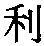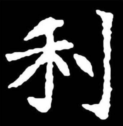 另见:利益 ☚ 利润 利息 ☛ 利lì力至切,去至。 ❶锐利,锋利。《荀子·劝学》:“木受绳则直,金就砺则~。” ❷灵便;利落。《周礼·考工记·车人》:“短毂则~,长毂则安。” ❸顺利;吉利。《史记·项羽本纪》:“力拔山兮气盖世,时不~兮骓不逝。” ❹利益,好处。《论语·里仁》:“君子喻于义,小人喻于~。” ❺利润,利息。《汉书·谷永传》:“为人起责,分~受谢。” ❻有利,利于。《韩非子·问田》:“~民萌,便众庶。” ❼利用,实行。《论语·里仁》:“仁者安仁,知者~仁。” 〖利〗 粵 lei6〔吏〕普 lì ❶ 銳利,鋒利。許慎《說文解字》:「〜,銛也。」(銛【粵 cim1〔簽〕普 xiān】:初指古代農具,引申為鋒利。)荀況《荀子.勸學》:「金就礪則〜。」(礪:磨刀石。)蘇洵《六國論》:「非兵不〜。」(兵:兵器。) ❷ 利益,好處,有成語「漁人得〜」。《論語.里仁》:「君子喻於義,小人喻於〜。」 ❸ 有利。《論語.里仁》:「知者〜仁。」(有智慧的人知道仁對自己有好處而行仁。) ❹ 順利,勝利,有成語「大吉大〜」。司馬遷《史記.高祖本紀》:「因與俱攻秦軍,戰不〜。」 ❺ 利潤。歸有光《項脊軒志》:「蜀清守丹穴,〜甲天下。」 ❻ 速度快。《荀子.勸學》:「假輿馬者,非 〜 足也,而致千里。」(輿:車。)