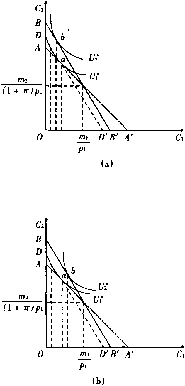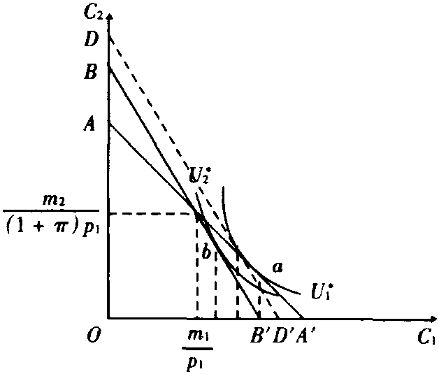 图2 利率变化对净借入者的影响:消费组合由a点移动到b点 〖参〗利率的收入效应 ☚ 价格效应 利率的收入效应 ☛ |