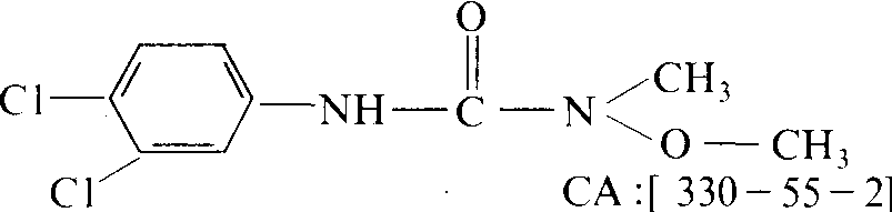 性能 纯品为白色结晶,熔点93~94℃。24℃时蒸气压为1.99×10-3帕。24℃时在水中溶解度为81毫克/升; 易溶于丙酮,中等溶于乙醇、芳烃,难溶于脂肪烃。在熔点下和水中都是稳定的。遇酸、碱、在潮湿土壤中或在高温下都会分解。无腐蚀性。原药纯度≥94%。低毒。大白鼠急性口服LD50为4000毫克/千克,狗急性口服LD50为500毫克/千克。兔急性经皮LD50>5000毫克/千克。在豚鼠皮肤上用10%水悬浮液处理引起轻微至中等程度的刺激,无过敏反应。两年饲喂试验,每千克饲料对大白鼠和狗无作用。剂量为125毫克/千克; 8天饲喂试验: 每千克饲料绿头鸭LC50为3083毫克/千克; 日本鹌鹑LC50>5000毫克/千克; 96小时喂养试验,蓝鳃太阳鱼和虹鳟鱼的LC50为16毫克/升。具有内吸和触杀作用,主要通过杂草的根部吸收,也可被叶片吸收。抑制杂草的光合作用,使杂草饥饿而死。对杂草种子萌发没影响,只有当杂草种子内的养料耗尽后,幼苗才死。土壤中残效期100~120天。 应用 制剂为50%可湿性粉剂。用于大豆、玉米、高粱、棉花、马铃薯、胡萝卜、芹菜、水稻、小麦、花生、甘蔗、果树、葡萄以及苗圃等地,防治稗草、牛筋草、狗尾草、马唐、蓼、藜、马齿苋、鬼针草、苋菜、猪殃殃、眼子菜、豚草等。大豆、玉米、高粱地,每公顷用50%可湿性粉剂2250~3000克进行苗前土壤处理; 或用1200克加1500克48%拉索乳油喷雾土壤处理; 也可与杜耳、毒草胺混用; 大豆田还可与氟乐灵混用土壤处理。大豆田使用,要求播种深度为4~5厘米,过浅易产生药害。棉田使用,每公顷用50%可湿性粉剂1875~2250克进行播后苗前土壤处理,过量,易产生药害。冬小麦田使用,播后苗前每公顷用1500~1950克喷雾土壤处理。水稻田,每公顷用1200~1500克防治眼子菜。苗后茎叶处理,药液中加入0.6%表面活性剂,喷药位置不得超过作物高度的1/3,防止药液落到作物叶面上产生药害。土壤有机质含量低于1%或高于5%的田块不宜使用;砂性重,雨水多的地区不宜使用。敏感作物有甜菜、向日葵、甘蓝、莴苣、甜瓜、小萝卜、烟草、茄子、辣椒等。喷雾器具使用后要清洗干净。 利谷隆linuron取代脲类选择性除草剂。化学名称为3-(3,4-二氯苯基)-1-甲氧基-1-甲基脲。化学结构式如下。纯品为白色结晶固体,熔点93~94℃,24℃时蒸气压为2×10-3Pa,微溶于水及脂肪烃,易溶于丙酮、乙醇、苯、甲苯、二甲苯等有机溶剂。在溶点下和溶液中稳定,在酸、碱及潮湿土壤中缓慢分解。芽前或芽后除草剂,具有内吸和触杀作用,主要通过杂草根部吸收,叶、茎吸收较少。在含叶绿素部分,抑制杂草的光合作用,阻碍希尔反应,破坏碳水化合物的形成,使植物饥饿致死。主要用于玉米、棉花、大豆、冬麦、高粱、花生、马铃薯、甘蔗、菜豆、豌豆等以及果园防除稗草、马唐、狗尾草、看麦娘、野燕麦、鸭跖草、铁苋菜、马齿苋及藜等一年生单子叶和阔叶杂草。对人、畜低毒,大鼠急性口服LD50为4 000 mg/kg,对鱼类低毒。