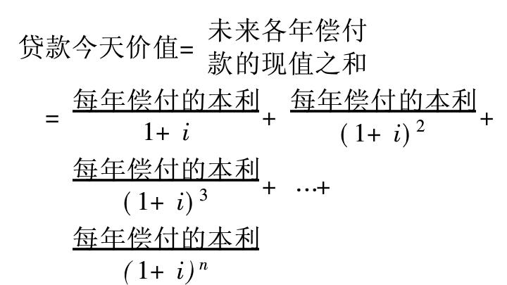 2. 定期定额清偿贷款。贷款人向借款人提供一笔贷款,在整个贷款期限内,借款人每年都要偿付相同的本金和利息,期满时全部偿清。未来各年偿付款的现值之和要等于贷款今天的价值。可记为: