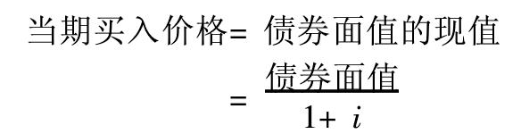 4. 贴现发行债券,又称“无息债券”。这种债券的购买价低于其票面值,期满时以面值偿付。以一年期满的贴现发行债券为例,其债券面值的现值要等于当期买入价格。可记为: