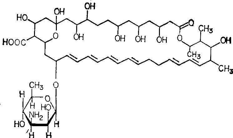 制霉菌素(nystatin)是诺斯什链霉菌Str.noursei、金色链霉菌Str. aureus所产生的四烯抗生素。为浅黄色,两性。 其结构与一般四烯抗生素不同,但和七烯抗生素如两性霉素B、杀念珠菌素相近,皆为38元环,仅在28至29位C缺一双链和7、8、9、10位C所连之辅基有些不同。制霉菌素不溶于水、氯仿、丙酮和己烷,略溶于甲醇、乙醇。 制霉菌素对致病真菌都有一定抑制作用,如白色念珠菌、新型隐球菌、组织胞浆菌、皮炎芽生菌等,最低抑菌浓度在1~3μg/ml。对细菌无活性。制霉菌素口服不吸收,局部应用不能被皮肤或粘膜所吸收。本品毒性较大,故多制成片剂供口服,治疗胃肠道真菌病,或以制霉菌素软膏治疗皮肤真菌病、念珠菌阴道炎,或以气溶吸入治疗肺部真菌病。制霉菌素对阴道滴虫也有一定效果。长期应用广谱抗细菌抗生素时,可口服制霉菌素片剂以防止真菌引起的二重感染。口服成人每日四次,每次50万~100万U。局部用软膏10万~20万U/g或混悬剂10万U/ml。多聚醛制霉菌素可供气溶吸入和膀胱灌注,每次5万U,分别溶于2ml或20~50ml生理盐水中。 ☚ 两性霉素B 灰黄霉素 ☛ 制霉菌素nistacin |