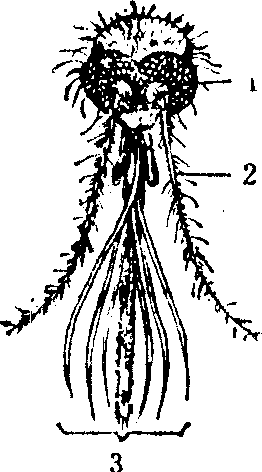 刺吸式口器(蝉)外面观 1.舌侧叶 2. 下颚叶 3. 下唇 4. 上唇 5. 前唇基 6.后唇基 刺吸式口器 刺吸式口器cixishikouqi昆虫口器的一种类型。如蝉等的上下颚特化成口针,下唇延长成1个槽管,管内包藏口针,上颚口针粗,末端有倒刺,下颚口针细,内壁有糟管,合抱一起形成食物道和唾液管,整个口器形成针状的管。吸食时,仅将上下颚组成的口针插入植物组织中吸食液汁。雌蚊的下唇延长成针状喙,在背面的唇槽内藏有由上唇、上下颚和舌特化成的细长口针。食物道由上唇内凹形成。6条口针可用作刺吸其他动物体内的血液。