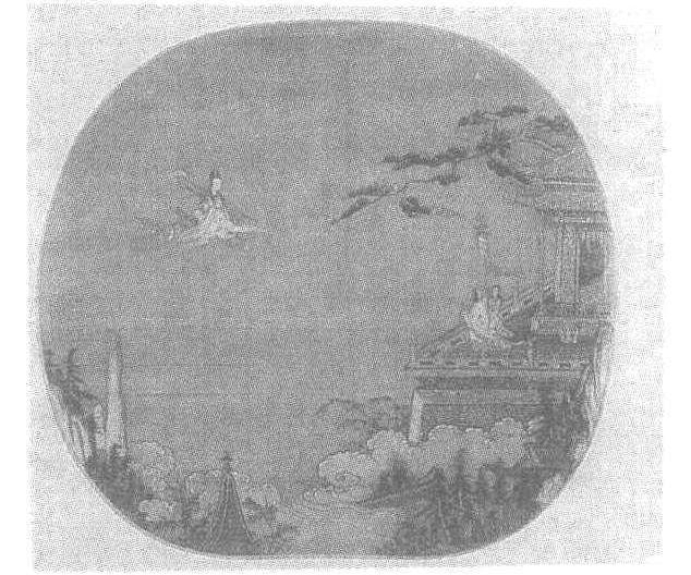 | 释义 | 刺绣瑶台跨鹤图 刺绣瑶台跨鹤图南宋。纵25.4厘米,横27.4厘米。辽宁省博物馆藏。以棕色绢为地,用彩色绣线和捻金线绣制成纨扇形画幅:云雾漂渺,气象万千,一仙女跨鹤飞来,面容慈祥,在楼阁瑶台之上,二眉目清秀女童作迎仙状。此图以齐平针绣主体纹,还采用单线的松针、杉叶松针绣。屋瓦以捻金线为垅,用细线钉于画面。砖纹、斗拱、勾阑华板、卷帘皆以单线盘轮廓压绣面。屋顶、戗脊、普柏枋、立柱、阑额等以捻金线的钉金绣针法为主,以金箔为地钉线勾边。绮窗先铺白线,上以黄色单线编绣窗格。室内暗壁用墨笔描绘。绣工精巧,配色和谐,针法匹配奇特,细妙入神,光华相映。
