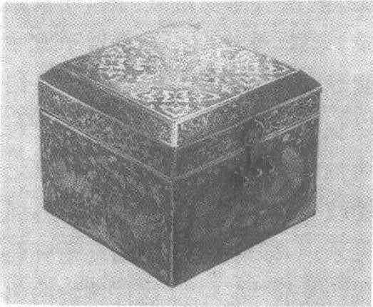唐。高10厘米,长宽各12厘米。1970年陕西省西安市南郊何家村窖藏出土。陕西省博物馆藏。此盒纹饰细密,刻镂精工。孔雀、鸾鸟,错杂于山云花树之间,主题突出,极尽其趣。