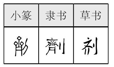 jì劑,表意,从齊从刀,齊指整齐,本义表示修剪整齐,引申为调和、调配而成的药物、某些有化学作用或物理作用的东西等。《简化字表》类推简作“剂”。 |