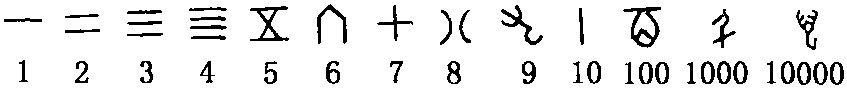 十、百、千、万的倍数在甲骨文中则用合文写成,如: