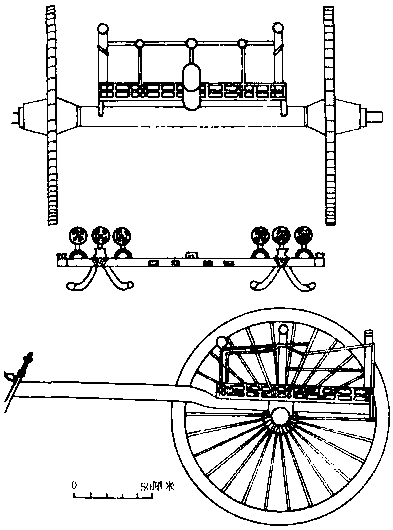 战国车型 公输般(又名鲁班)创造磨粉用的硙 (石磨);为楚国制造攻城用的运梯和舟战用的钩拒; 用竹片和木料制成飞鹊; 为其母制作木车马;发明木作工具,工艺精巧,被尊为木匠祖师。 |
