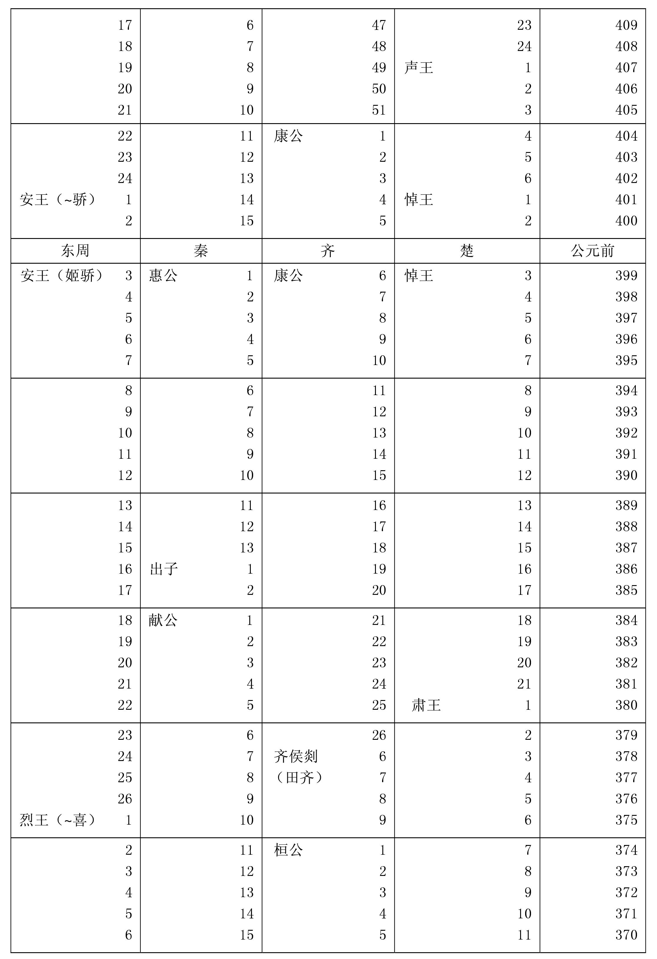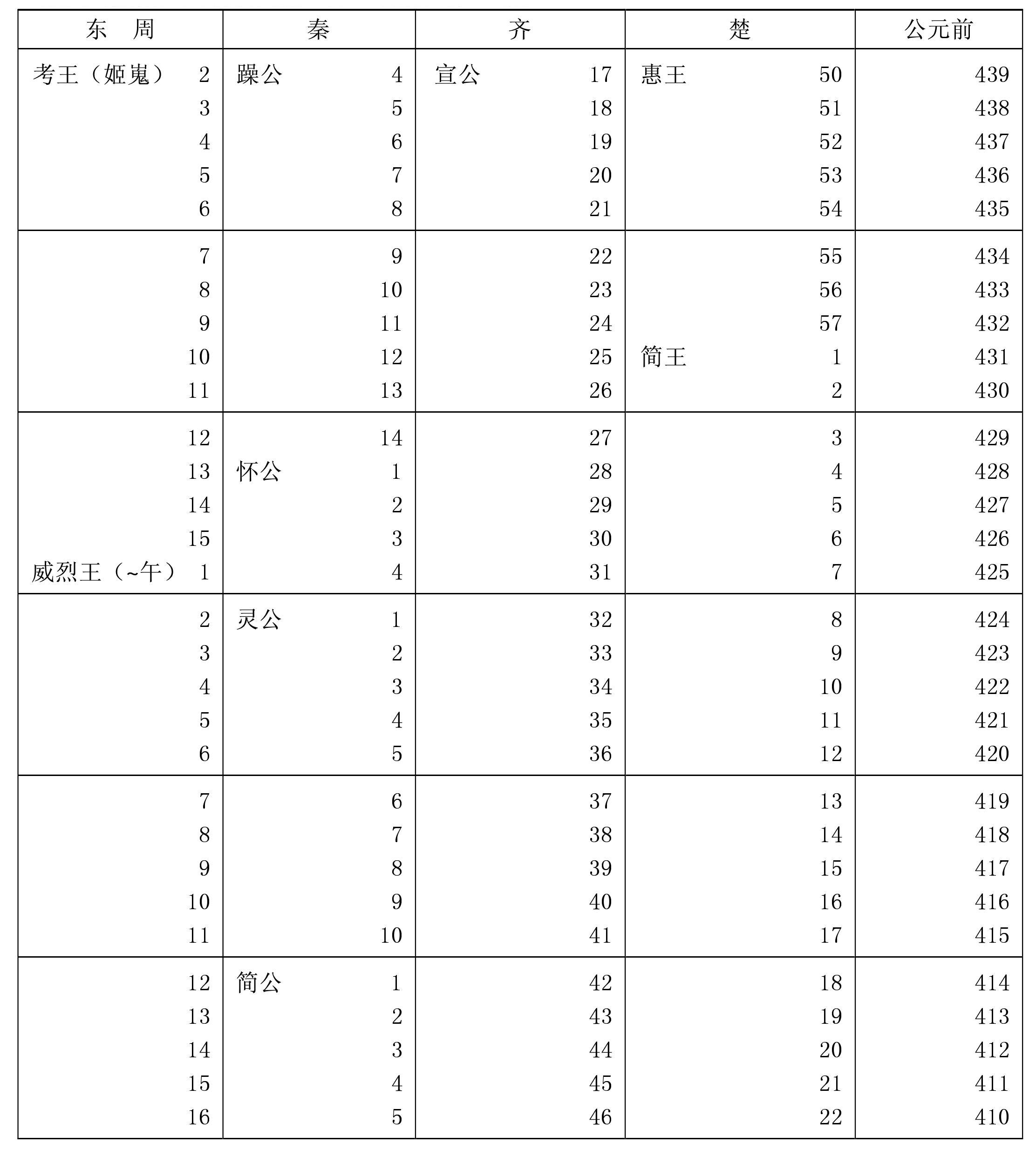 *战国时期附主要诸侯国秦、齐(包括田齐)、楚。