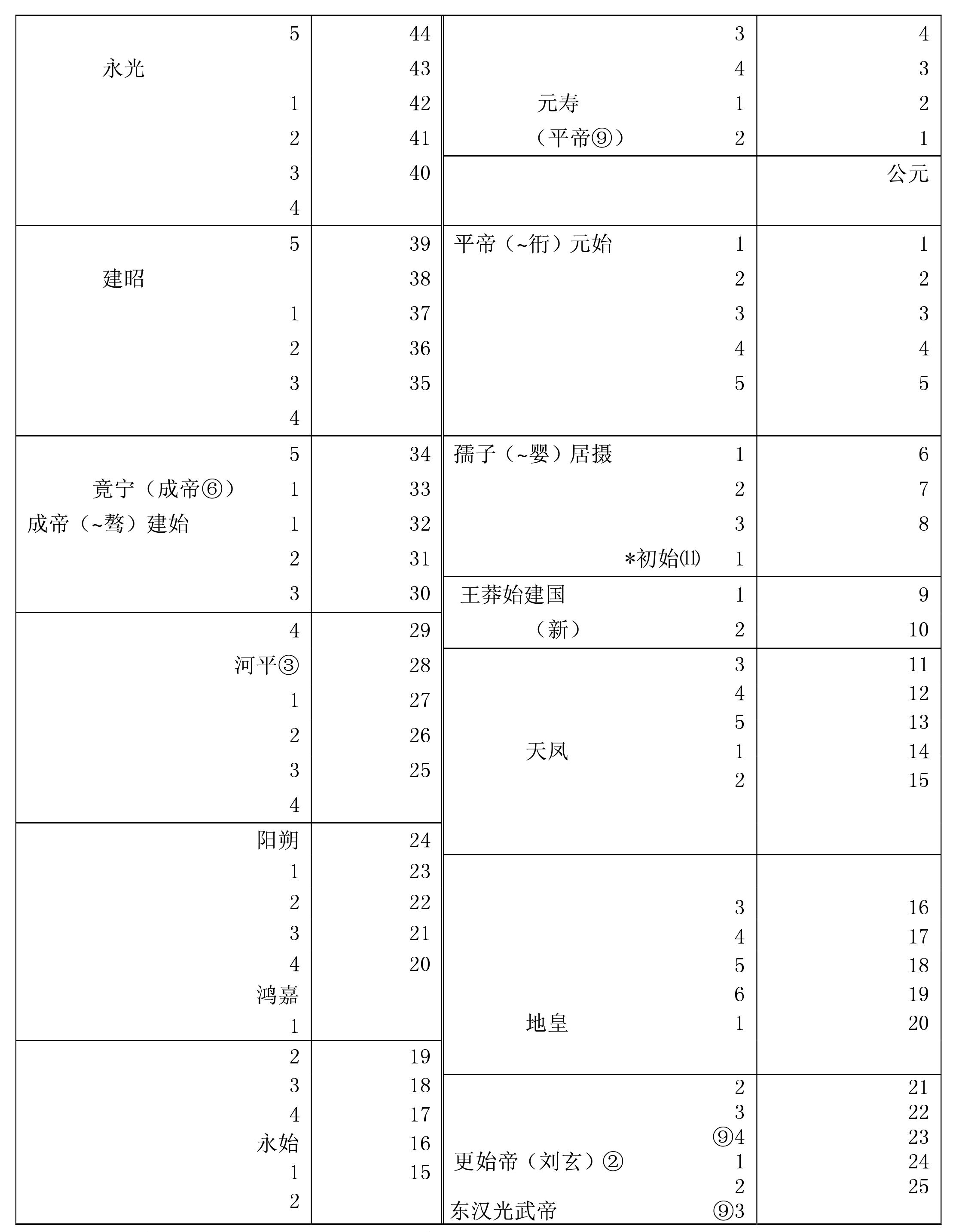 *十二月王莽建立新朝,年号始建国,即以本月为正月。9东汉(25—220)