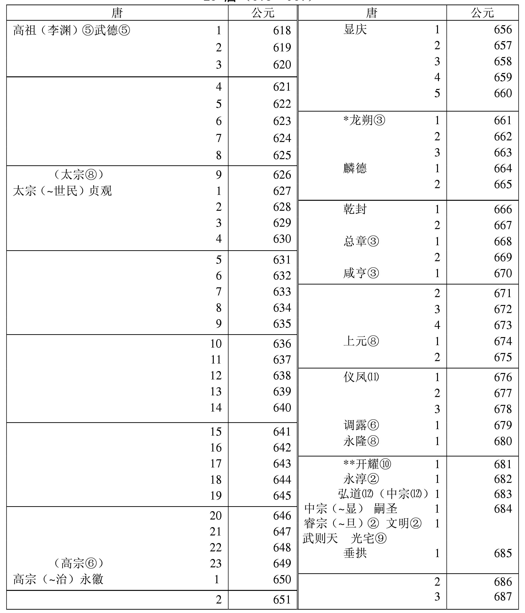 *一作二月。 **一作九月。 ***武则天称帝,改国号为周。
