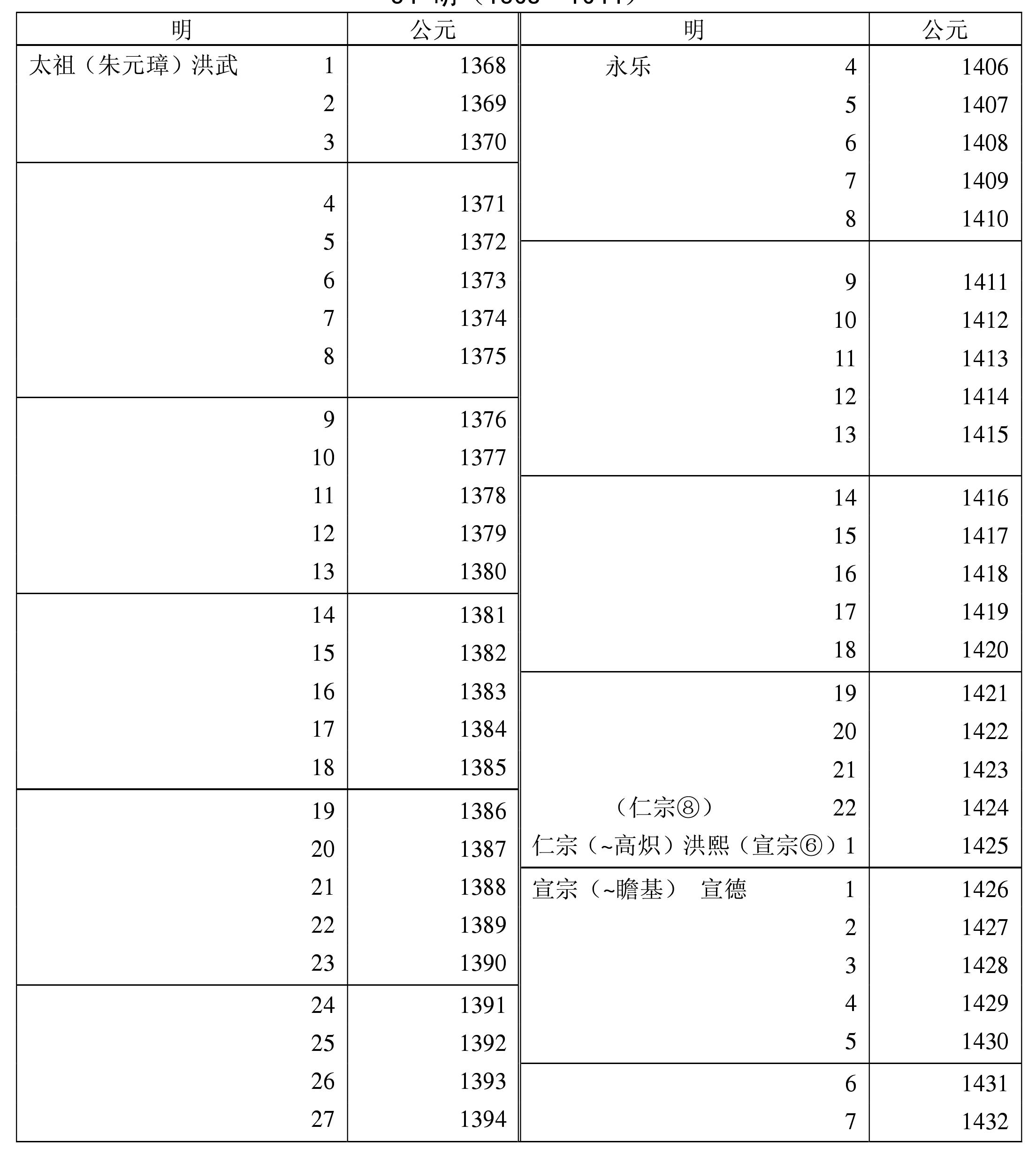 *元惠宗(顺帝)退出大都。一般史家认为此年元朝灭亡。34明(1368—1644)