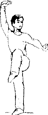 | 释义 | 前提膝平衡 前提膝平衡武术平衡动作之一。为上体正直,一腿支撑,另一腿屈膝高提收控于体前。两臂可成不同姿势,右臂上举,掌心向上,左臂后伸成勾手,称为提膝勾手亮掌。动作要领:前腿提膝要对腰,小腿屈紧,脚尖绷直内收,平衡站稳。教学重点: