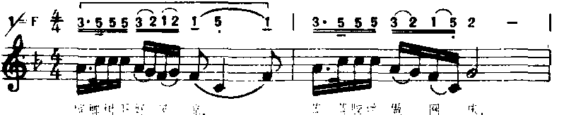 以上两个动机(乐汇)由于节奏的紧凑,它包含了词组“我和小刚”和短句子“槟榔树下好风凉”。 ☚ 曲调的组成单位 乐节的设计 ☛ |