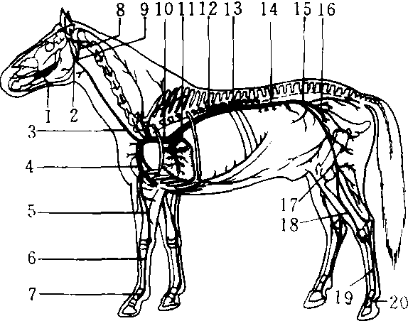 马的全身动脉 1. 面动脉 2. 颈外动脉 3. 颈总动脉 4. 臂动脉 5. 正中动脉 6. 指总动脉 7. 指外侧动脉 8. 枕动脉 9. 颈内动脉 10. 臂头动脉总干 11. 肺动脉 12. 主动脉 13. 肋间背侧动脉 14. 腰动脉 15. 髂内动脉 16. 髂外动脉 17. 股动脉 18. 胫前动脉 19. 跖背外侧动脉 20. 趾外侧动脉 动脉❶脉象之一。脉形如豆,厥厥动摇,滑数有力,搏动部位较局限,节律不匀。见于惊恐及痛证。 动脉 动脉dongmai根据血管内血流的方向,把 从心脏运送血液到机体各部分的一类血管总称为动脉。动脉管壁都由内层、中层和外层组成,管壁较厚。内层内表面为单层扁平上皮,表面光滑; 中层由弹性纤维和平滑肌组成; 外层主要由结缔组织组成。人体中直接起始于心脏的动脉有两条大干,即肺动脉和主动脉。左心室连主动脉,右心室连肺动脉。肺动脉把全身返回心脏含二氧化碳较多的暗红色静脉血由右心室送到肺脏。主动脉把含氧较多的鲜红色动脉血从左心室送到全身。按管径大小不同,动脉又可分为大、中、小三种。大动脉的中层厚,环行平滑肌和弹性纤维发达,能随血量的增减和血压的高低而胀缩;中动脉的中层管壁平滑肌很发达; 小动脉的肌层较薄。在植物性神经系统的支配下,动脉作舒缩运动,可调节血流和血压。由于动脉管壁的弹性作用,才保证了血液在血管中的连续流动。动脉管壁组织随年龄而变化。老年人动脉弹性减退,对血压的调节能力降低。所以,人在老年时的血压较年轻时的血压高。 ☚ 脉搏 静脉 ☛ 动脉artery从心脏输送血液到全身器官的血管称为动脉。动脉按其口径大小可分为大、中、小动脉。动脉管壁由内膜、中膜、外膜3层构成。从左心室发出的动脉以及其所有分支都运送着动脉血,即含饱和氧的新鲜血;从右心室发出的肺动脉,却为静脉血。动脉主要把氧及各种营养物质运至全身各器官和组织(肺动脉除外),供组织新陈代谢用。动脉发生的疾病有脉管炎、动脉硬化、痉挛、血栓形成、栓塞及破裂等。某些动脉疾病后果十分严重,尤其发生在心、脑部位的动脉硬化和破裂,更为严重。 动脉将血流从心脏运送到身体各部分的血管。分为大、中、小三类:大动脉包括主动脉、肺动脉、无名动脉、锁骨下动脉和颈总动脉。接近心脏,管壁弹性大,能适应心脏收缩时的强大血压而弹性扩张,当心脏舒张时,弹性回缩又可维持连续的血流。中动脉有比较丰富的平滑肌,收缩或舒张可改变管径,调节分布的血量。小动脉的舒缩,可影响器官和组织中的血流量。随着年龄的增长,动脉内膜增厚,弹性减退,脂类物质逐渐沉积,易产生动脉硬化及高血压。 动脉 动脉从心脏运送血液到身体各部位的血管的总称。起于左心室的动脉称主动脉,起于右心室的动脉称肺动脉。动脉管径随其分支由大逐渐变小,一般分大、中、小、微四种动脉。大动脉的管壁厚而坚韧,含有弹力纤维,富有弹性。心室收缩时,主动脉(属大动脉),内血量增加,压力增大,管壁扩张,将心脏收缩释放的一部分能量转化为弹性势能暂时贮存。心室舒张时,管壁回缩,将势能转化为动能推动血液继续向前流动,故大动脉起着“弹性贮器”的作用,称弹性贮器血管或弹性血管。中动脉将血液运输到各器官组织,其管壁平滑肌的舒缩,可改变血流阻力,调节血流量,故又称分配血管。小动脉的口径小,数量多,其管壁平滑肌的舒缩可改变外周阻力,故称阻力血管。微动脉口径的改变可调节流入毛细血管的血流量,称毛细血管前阻力血管。动脉管壁由内膜、中膜、外膜组成。内膜最薄,由内皮、内皮下层、内弹性膜组成。内皮邻管腔,由单层内皮细胞组成,表面光滑,可减少血流阻力。内膜下层含胶原纤维、弹性纤维和成纤维细胞。内弹性膜由弹性蛋白组成,膜上有小孔,称窗膜。中膜较厚,由环状排列的平滑肌细胞和弹性纤维组成。外膜疏松,由结缔组织和少量弹性纤维组成,内含营养血管壁的小血管、淋巴管和神经。 ☚ 血管系统 血压 ☛ 动脉artery是将血液从心室运往全身的血管。其管壁由内膜、中膜和外膜构成。内膜和中膜以内弹性膜为界,中膜和外膜以外弹性膜为界。动脉管壁的结构可因管径的粗细不同而有明显的差异: 动脉dònɡmài❶脉象之一。脉形如豆,厥厥动摇, 滑数有力, 搏动部位较局限, 节律不匀。见于惊恐及痛证。《脉经》: “动脉见于关上, 无头尾, 大如豆, 厥厥然动摇。”《伤寒论》: “阴阳相搏, 名曰动。” 动脉 动脉动脉是从心室输送血液到全身毛细血管的血管。连接心室的大动脉管径最大,管壁最厚。随着动脉的一再分支,血管逐级越分越细,管壁相应变薄,最后成为靠近毛细血管的小动脉而接毛细血管。动脉可根据管径大小和管壁构造的不同分为大、中、小动脉。大动脉壁主要由弹性膜构成,又称为弹性动脉。人的主动脉、肺动脉、头臂动脉以及锁骨下动脉和颈总动脉皆属于大动脉,富有弹性。当心室收缩射出大量血液时,大动脉管壁扩张,增大血容量,缓冲心搏压力; 心室舒张时,大动脉管壁回缩,起辅助的泵作用,使血液不间断地向远处流动。中、小动脉壁内主要由平滑肌构成,又称肌性动脉。人的肱动脉、股动脉以及肾动脉等都属于中动脉。管壁富含平滑肌,具有较强的收缩力。能使管腔明显地缩小或扩大,从而调节分配到全身各部和器官的血流量。动脉管径在1mm以下的属于小动脉,管壁仅具有完整的平滑肌层。小