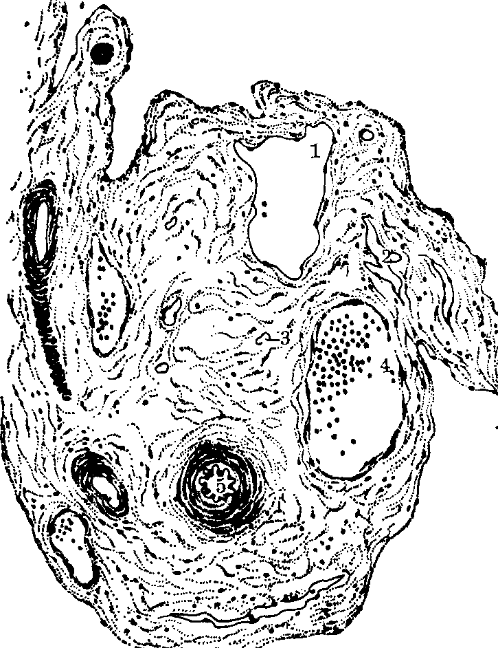图3 小动脉、小静脉、小淋巴管和毛细血管(低倍光镜) 1.小淋巴管 2.毛细淋巴管 3.毛细血管 4.小静脉 5.小动脉 不典型动脉 一种类型的动脉过渡到另一类型的动脉时,管壁构造常是渐变的,具有不典型的结构。有些中等大小的动脉,如腘动脉和胫动脉,管壁呈现弹性动脉的结构。有些较大的动脉,如髂总动脉和髂外动脉,颈外动脉和腋动脉,管壁的构造又象肌性动脉,中膜常有较多的平滑肌。由腹主动脉分出的几个内脏动脉,中膜分二层,内层主要为平滑肌,外层主要为弹性组织。 特殊动脉 有些部位和器官的动脉,因受局部因素或其它因素的影响,管壁构造呈现明显的特点。冠状动脉因血压较高,管壁较厚并富有弹性组织,内膜厚并含纵行平滑肌,中膜环行肌外还有纵行肌。由于同样的原因,下肢动脉同上肢相应大小的动脉相比,中膜有较多的平滑肌。肺动脉因血压较低,管壁较薄,中膜内平滑肌和弹性膜较少,也没有内弹性膜。脑和脑膜的动脉,因有颅骨保护,没有外来的压力和张力,管壁很薄,但有很明显的内弹性膜。常受屈伸动作影响的动脉,管壁常有成束的纵行平滑肌;有的在内膜中(枕动脉、掌动脉、子宫动脉);有的在中膜中(阴茎动脉、脾动脉、肠系膜上动脉、肾动脉);有的在外膜中(舌动脉、脾动脉、肾动脉)。阴茎和外阴的动脉,于青春期后内膜和中膜增厚,内膜尤其厚,含较多的纵行平滑肌。子宫和卵巢的动脉于月经周期和妊娠期中管壁结构有明显变化。胎儿脐动脉内膜只有内皮,没有内弹性膜,中膜含弹性组织少,平滑肌发达并分二层,内层纵行,外层环行。冠状动脉、甲状腺动脉、肾动脉、脾动脉、颅内动脉和鼻粘膜的动脉分支处,常见内膜增厚凸入腔内,形成纵向的内膜垫。内膜垫是否为正常的结构,见解不一,有人推想它或许起调节血流的作用。 ☚ 循环系统 静脉 ☛ 动脉strong and rapid pulse 动脉dòng màibouncing pulse; rapidpulse |