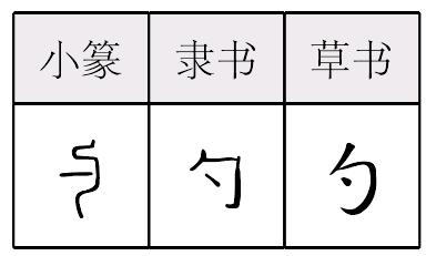 [小篆]《說文》: , 枓也。 所以挹取也。象形。中有實,與包同意。凡勺之屬皆从勺。(十四篇上)