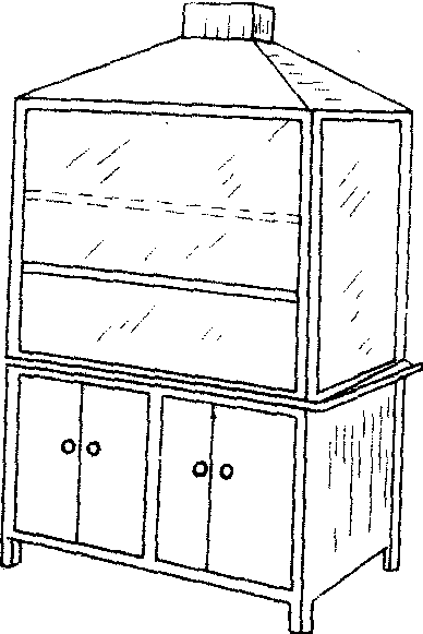 ❻通风橱学生实验室和准备室内部应安装通风橱。实验室内的通风橱可放在讲台一侧的墙角。凡是演示有害气体的仪器,都应放在通风橱里。普通的通风橱如图5所示。橱的正面为玻璃的上下拉门,两侧镶装玻璃,便于学生观察,顶部的排风口可采用自然排风和强迫排风。 ☚ 中学化学实验室 仪器的保管 ☛ |